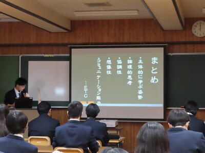 1月20日(火)課題研究発表会を行いました。3年生の商業科目「課題研究」では、それぞれが興味・関心のある内容について調査・研究をしていました。発表会では、研究の成果をしっかりまとめて全校生徒の前で発表していました。