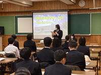 12月11日(木) 札幌国際大学准教授 新谷 弥様に2年生対象にキャリア教育についての講話を行いました。「目的を持って働くことの意味 自分らしい生き方をつくる“目的×資源”の思考法」と題して、コミュニケーションスキルや時間管理などについて話をしていただきました。生徒は来年の進路決定に向け、真剣に講話を聞いて意識を高めていました。